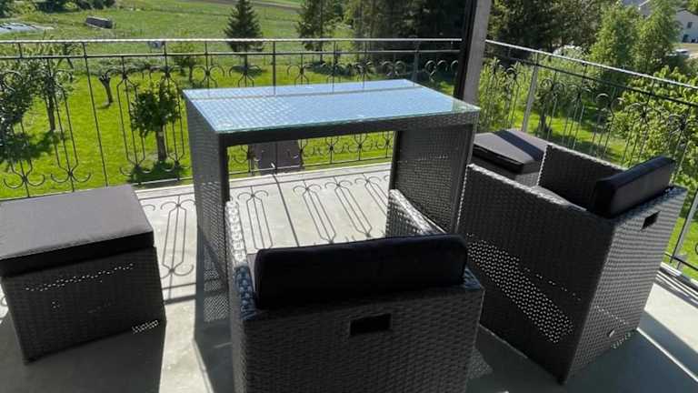 Die Ferienwohnung umfasst zwei Schlafzimmer, ein Wohnzimmer, ein Badezimmer mit Badewanne sowie eine gut ausgestattete Küche, die mit einem Kühlschrank und einer Mikrowelle versehen ist. Des Weiteren bietet die Unterkunft einen Flachbild-TV, Handtücher und Bettwäsche. Ein großer Balkon mit Gartenblick sowie eine Veranda gehören ebenfalls zur Ausstattung.