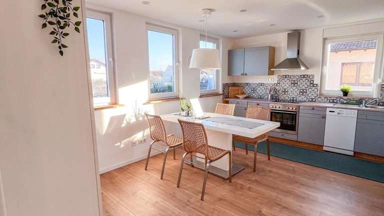 In der Ferienwohnung haben Sie die Möglichkeit, Ihre eigenen Mahlzeiten zuzubereiten, da eine voll ausgestattete Küche vorhanden ist. Alternativ können Sie auch die Restaurants und Cafés in der Umgebung erkunden und lokale Spezialitäten genießen.
