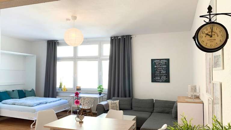 Die Helle Wohnung befindet sich in einer erstklassigen Lage am Hasselbachplatz, ganz in der Nähe der Altstadt von Magdeburg. In nur 200 Metern Entfernung erreichen Sie das Schauspielhaus Magdeburg, in 400 Metern das Kulturhistorische Museum Magdeburg und in 500 Metern den Magdeburger Dom. Auch der Alte Markt Magdeburg ist nur 1,3 Kilometer entfernt. Die zentrale Lage ermöglicht es Ihnen, die Stadt bequem zu Fuß zu erkunden und die vielen Sehenswürdigkeiten zu besuchen.