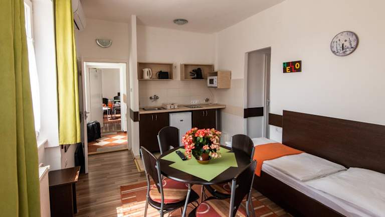 Im Hello Apartman erwarten Sie komfortable Zimmer mit einer gut ausgestatteten Küchenzeile, die einen Kühlschrank und einen Wasserkocher umfasst. Die Zimmer verfügen über einen Flachbild-Kabel-TV und kostenfreies WLAN. Das eigene Bad ist mit einer Dusche ausgestattet. Einige Zimmer bieten zudem einen schönen Blick auf den Garten.