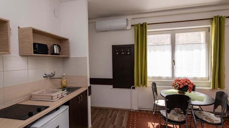 Das Hello Apartman in Sopron ist eine ideale Unterkunft für Reisende, die kostenfreies WLAN und eine zentrale Lage suchen. Die Unterkunft bietet einen Garten und komfortable Zimmer mit Flachbild-Kabel-TV. Die Küchenzeile ist gut ausgestattet und das eigene Bad verfügt über eine Dusche. Von einigen Zimmern aus genießen Sie einen schönen Blick auf den Garten. In der Umgebung können Sie verschiedene Aktivitäten wie Radfahren, Wandern und Bowling unternehmen. Parkplätze stehen zur Verfügung und viele Sehenswürdigkeiten sind bequem zu Fuß oder mit dem Auto erreichbar.