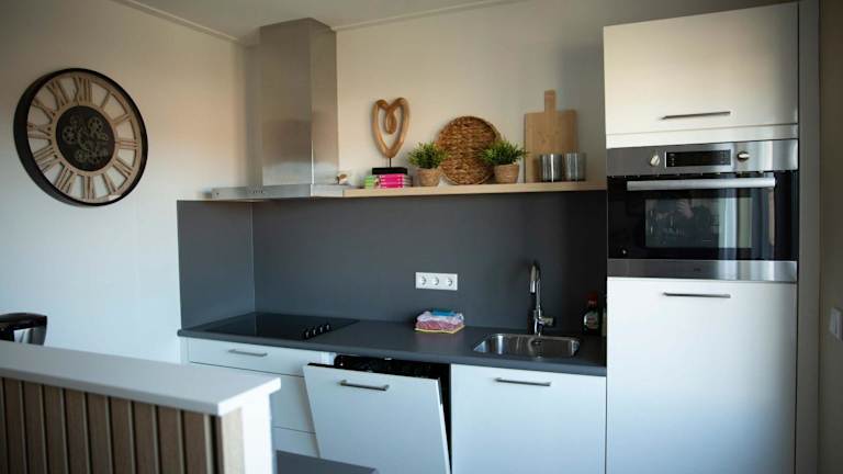 Das Ferienhaus verfügt über ein separates Schlafzimmer, eine voll ausgestattete Küche mit Geschirrspüler und Ofen sowie ein Badezimmer. Handtücher und Bettwäsche werden bereitgestellt.