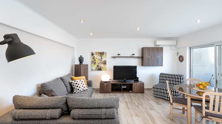 Die klimatisierte Ferienwohnung umfasst ein Schlafzimmer, ein Wohnzimmer und eine voll ausgestattete Küche mit Kühlschrank und Kaffeemaschine. Zudem gibt es ein Badezimmer mit Dusche und Haartrockner. Handtücher und Bettwäsche werden zur Verfügung gestellt.