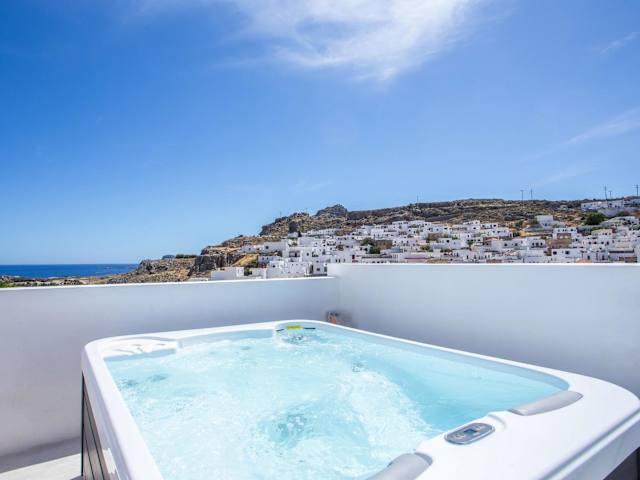 In den Heritage Luxury Suites können Sie sich im Whirlpool entspannen und die ruhige Atmosphäre genießen. In der Umgebung können Sie auch den Agios Pavlos Strand besuchen und die Sonne und das Meer genießen. Erkunden Sie außerdem die nahegelegenen Sehenswürdigkeiten wie den Strand Lindos Megali Paralia und die beeindruckende Akropolis von Lindos.
