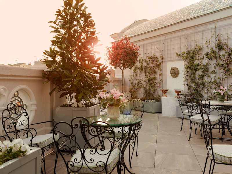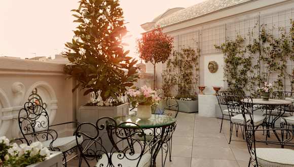 Auf der Terrasse des Hotels können die Gäste das schöne Wetter genießen.