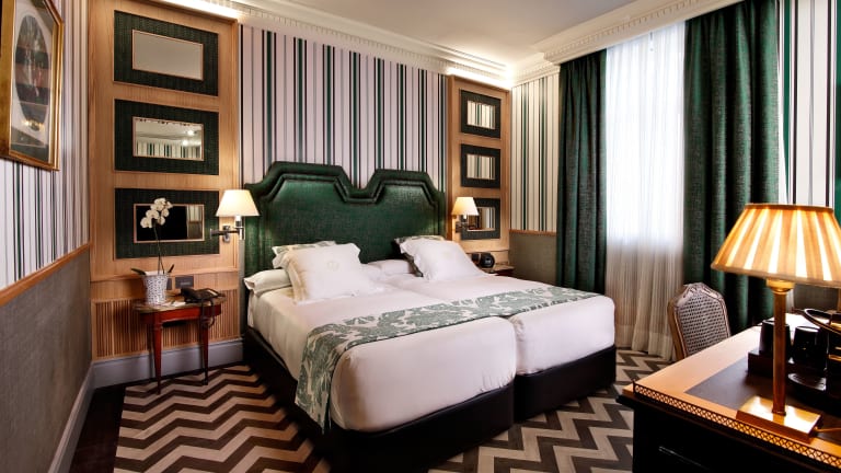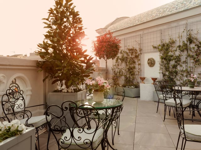 Das Relais & Châteaux Heritage Hotel in Madrid ist ein 5-Sterne-Hotel, das in einem denkmalgeschützten Gebäude aus dem 20. Jahrhundert untergebracht ist. Es bietet eine elegante Unterkunft mit modernem Dekor und erstklassigem Service. Genießen Sie regionale und mediterrane Küche im Restaurant Haroma, das vom renommierten Michelin-Sternekoch Mario Sandoval geleitet wird. Entspannen Sie auf der Sonnenterrasse oder erkunden Sie die Innenstadt und das Finanzviertel von Madrid, die nur einen kurzen Spaziergang entfernt sind.