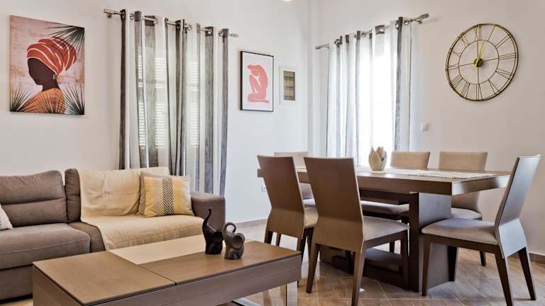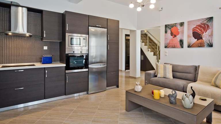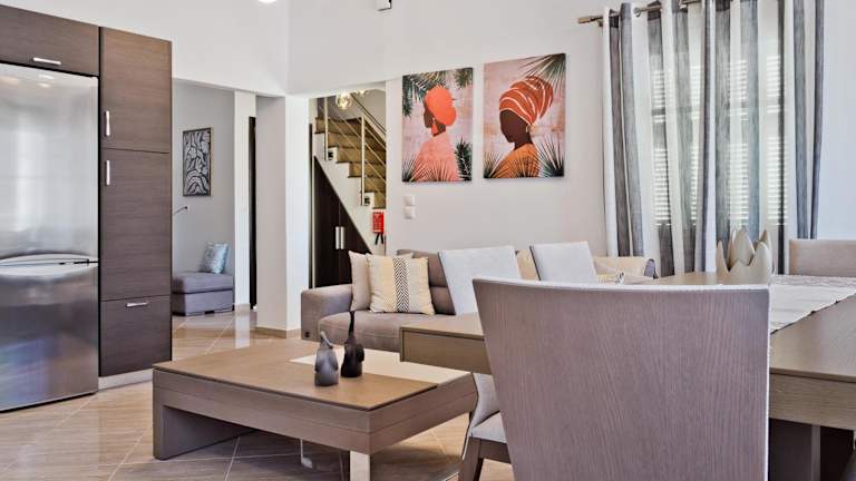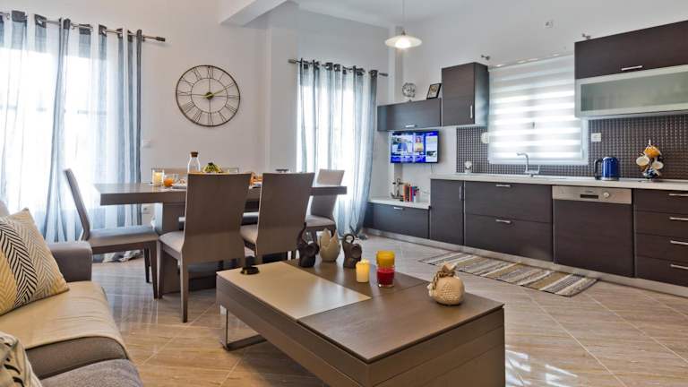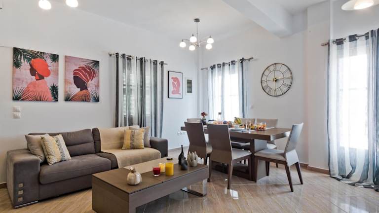 Hermes' Getaway ist ein Ferienhaus, das Übernachtungsmöglichkeiten mit einem Balkon und kostenlosem WLAN bereitstellt. Es bietet Grillmöglichkeiten und ist klimatisiert.