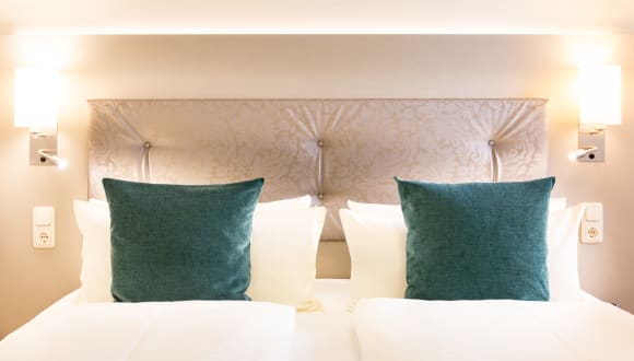 Unsere Einzelzimmer sind ca. 18 qm groß und mit einem King Size Bett (140 x 200 cm) ausgestattet. Unsere Doppelzimmer sind mit einem Doppelbett (180 cm x 200 cm) ausgestattet. Das Doppelzimmer (2 Räume, zum Teil mit Balkon) hat eine Größe von ca. 28 qm. Eine Aufbettung für eine 3. Person ist mit Aufpreis auf Anfrage möglich. Zur Ausstattung gehören ebenfalls Schreibtisch, Schranktresor, Kühlschrank sowie Wasserkocher (Welcome-Tray). Unsere ca. 35 qm großen Komfortzimmer Superior (2 Räume, aufgeteilt in Schlafraum sowie Wohnbereich) mit gemütlicher Sitzecke bietet ausreichend Platz um einen angenehmen Aufenthalt genießen zu können. Ein großer Schreibtisch sowie ausreichend Steckdosen sorgen dabei für eine angenehme Arbeitsmöglichkeit. Zur Ausstattung gehören ebenfalls Schranktresor, Telefon, Kühlschrank sowie Wasserkocher (Welcome-Tray). Alle Zimmer (EZ, Business-EZ, DZ oder KOMFORT) besitzen ein Bad und sind mit Dusche, WC, Fön, Kosmetikspiegel, Sat– TV und Schreibtisch ausgestattet. In allen Zimmern und öffendlichem Hotelbereich ist Internet über WLAN kostenfrei nutzbar.