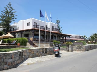 Das Hotel befindet sich in Chersonissos, nur einen kurzen Spaziergang vom Sandstrand entfernt. In etwa 18 Gehminuten ist das Aquaworld Aquarium zu erreichen. Der Flughafen Heraklion ist rund 25 km entfernt, die Transferzeit beträgt ca. 30 Minuten. Das Hotel liegt durch eine Straße vom Strand getrennt.