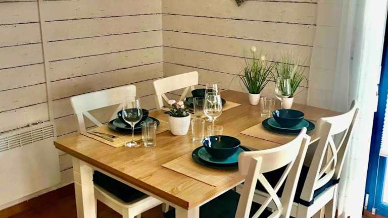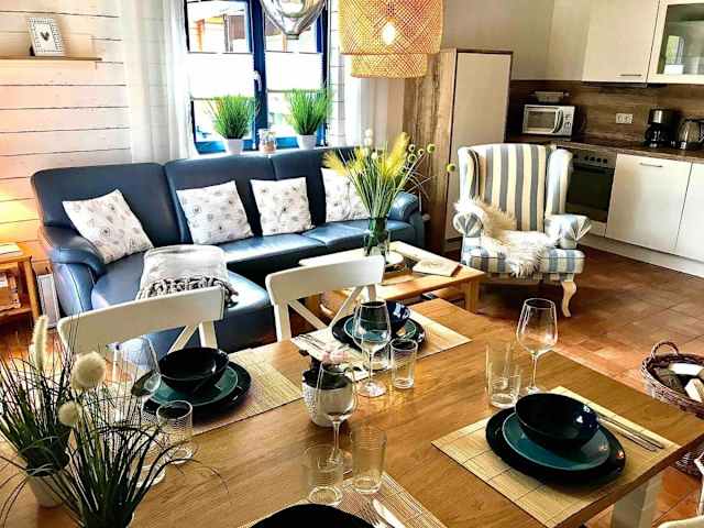 Die Unterkunft besteht aus 2 Schlafzimmern, einem Wohnzimmer, einer voll ausgestatteten Küche mit Kühlschrank und Kaffeemaschine sowie einem Badezimmer mit Dusche und Haartrockner. Für zusätzlichen Komfort sind Handtücher und Bettwäsche gegen Aufpreis verfügbar. Ein Grill kann ebenfalls in der Unterkunft genutzt werden.