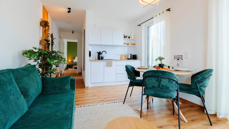 Hestlehomes - Stadtvilla Leine bietet seinen Gästen eine zentrale Lage mit Anbindung an öffentliche Verkehrsmittel. Die Unterkunft zeichnet sich durch moderne Annehmlichkeiten wie kostenfreies WLAN und Privatparkplätze aus. Darüber hinaus bietet sie einen Sitzbereich, der zur Entspannung einlädt.