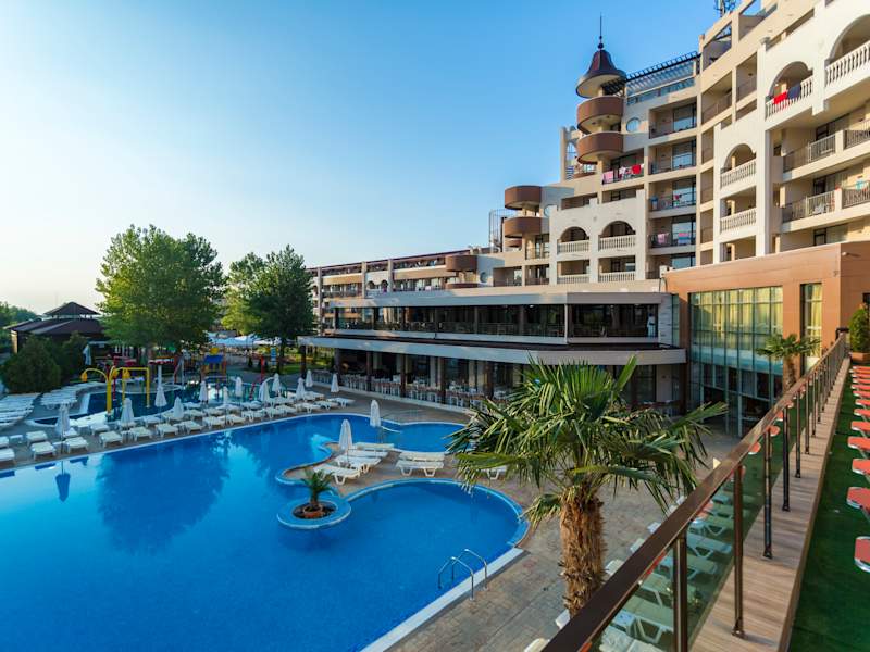 Die kinder-und familienfreundliche Hotelanlage, bestehend aus den Hauesern Imperial Sands und Imperial Beach, ist nur durch die Duenenlandschaft vom flachabfallenden und feinsandigen Strand getrennt. Das Resort liegt in der ruhigen Zone von Sonnenstrand, nur 2 km von der historischen Altstadt Nessebar entfernt. Das Zentrum von Sonnenstrand mit Einkaufs-und Unterhaltungsmoeglichkeiten ist mit Bus oder Bimmelbahn gut zu erreichen.