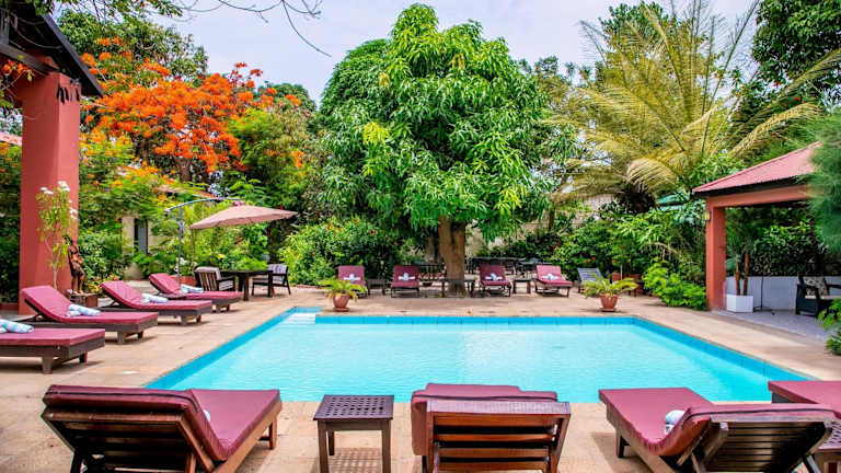 Das Hibiscus House Gambia bietet 2 Außenpools mit Sonnenliegen sowie eine Vielzahl von Einrichtungen, darunter eine 24-Stunden-Rezeption, einen Garten und eine Terrasse. Die Unterkunft ist nur für Erwachsene und akzeptiert keine Kinder unter 13 Jahren. Ein Shuttleservice zum Flughafen ist verfügbar, und Parkplätze stehen kostenfrei zur Verfügung.