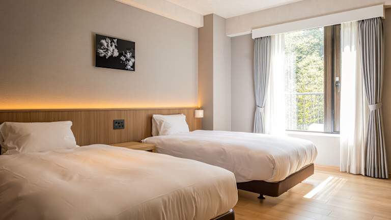 Das Hotel verfügt über 107 Zimmer auf 4 Etagen, die mit einem Aufzug erreichbar sind. Jedes Zimmer ist geräumig und bietet ein eigenes Badezimmer. Zur Ausstattung gehören ein Flachbild-TV, ein Kühlschrank, ein Wasserkocher, Hausschuhe und japanische Samue-Roben. Gäste finden auch einen grünen Teeset, kostenlose Pflegeprodukte und einen Haartrockner in ihrem Zimmer. Kostenloses WLAN steht in allen Zimmern zur Verfügung.