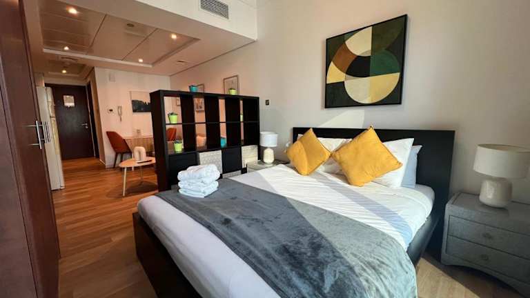 Higuest - Lake-view Studio in JLT bietet Übernachtungsmöglichkeiten mit einem Balkon und kostenlosem WLAN. Die Unterkunft erlaubt keinen Zugang zu Junggesellen-/Junggesellinnenabschieden oder ähnlichen Feiern. Der Check-in erfolgt ab 15:00 Uhr bis 23:30 Uhr, der Check-out bis 11:00 Uhr. Das Mindestalter für den Check-in beträgt 18 Jahre, Haustiere sind nicht gestattet. Die Unterkunft ist Nichtraucherbereich.
