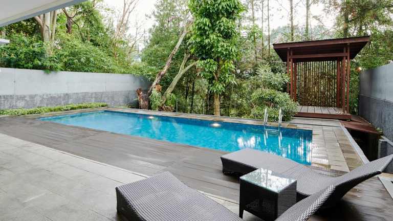 Das Hotel befindet sich in Jalan Dago Pakar Permai 2, No. 41, im Gebiet Resor Dago Pakar. Die Umgebung bietet Zugang zu Naturaktivitäten wie Radfahren und Wandern und liegt 400 Meter von Dago Pakar entfernt. Die wichtigsten Sehenswürdigkeiten, wie Gedung Sate (4,5 km) und Villa Isola (4,8 km), sind ebenfalls in der Nähe. Der Flughafen Husein Sastranegara ist 7 km entfernt und es steht ein Shuttleservice auf Anfrage zur Verfügung.