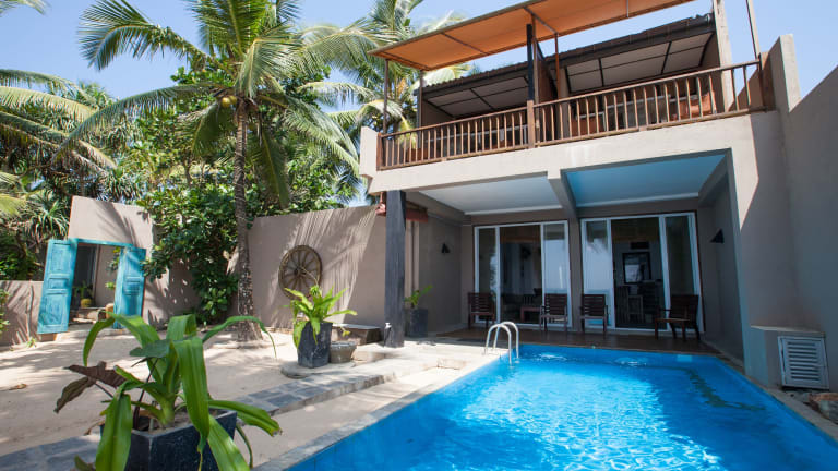 Die Hikks Villa in Hikkaduwa bietet eine ideale Unterkunft für Selbstversorger mit einem Außenpool und kostenfreiem WLAN. Die klimatisierten Zimmer verfügen über eine voll ausgestattete Küchenzeile und einen Balkon mit Meerblick. Genießen Sie die Annehmlichkeiten wie den Grillplatz und die Wassersporteinrichtungen. Der Strand und andere Sehenswürdigkeiten sind bequem zu erreichen. Kostenfreie Parkplätze stehen zur Verfügung.