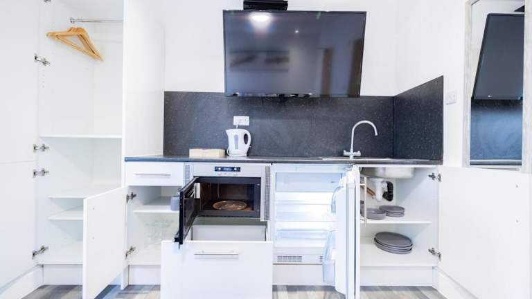 Die Zimmer in den Hillcrest Studio Apartments sind gemütlich und modern eingerichtet. Jedes Zimmer verfügt über einen Flachbild-Sat-TV, einen Kühlschrank und einen Wasserkocher. Das eigene Badezimmer ist mit einer Dusche, kostenlosen Pflegeprodukten und einem Haartrockner ausgestattet. Ein Kleiderschrank und Bettwäsche sind ebenfalls vorhanden.
