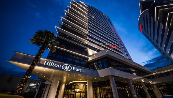 Das 5-Sterne Hilton Bursa Convention Center and Spa bietet Ihnen so einiges, was Ihren Businessaufenthalt in Bursa empfehlenswert macht. Aufgrund der hohen Qualität der angebotenen Dienstleistungen wurde diesem Hotel im Jahr 2014 das HolidayCheck Quality Siegel verliehen. Das Hilton Bursa Convention Center and Spa heißt Sie mit 187 klimatisierten Hotelzimmern willkommen. Das Hotel offeriert ein Café, eine Bar, ein Restaurant, einen VIP-Bereich sowie einen Konferenzraum. Zum Serviceangebot gehört ein Weckdienst.