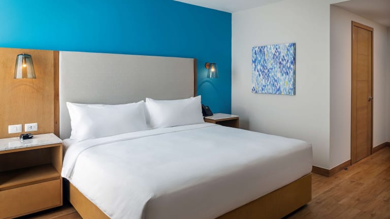 Das Hilton Garden Inn Cancun Airport verfügt über 186 Zimmer, die alle mit modernen Annehmlichkeiten wie einem Safe, WLAN, einem Fernseher und einem eigenen Bad ausgestattet sind. Gäste können auch den Zimmerservice nutzen und sich im Hotel entspannen.