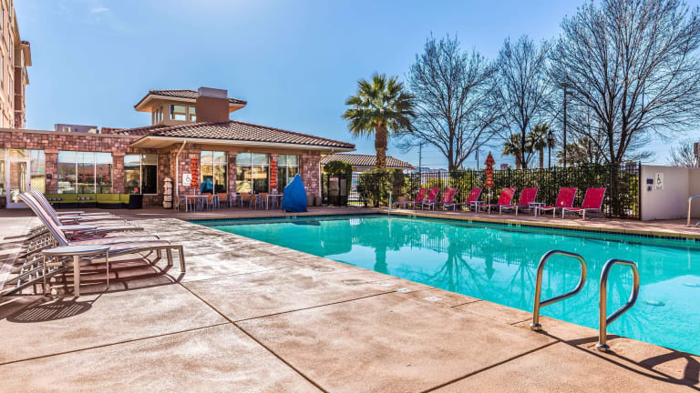 Das Hilton Garden Inn St. George bietet seinen Gästen einen komfortablen Aufenthalt mit modernen Annehmlichkeiten. Das Hotel liegt in der Nähe des Dixie Convention Centers und ist gut erreichbar über den Interstate 15. Mit einem 24-Stunden-Minimarkt, einer Kaffeemaschine, einer Mikrowelle und einem Mini-Kühlschrank in jedem Zimmer können Gäste ihren Tag optimal beginnen. Das Hotel verfügt außerdem über ein Fitnesscenter und einen Außenpool. Die Lage des Hotels ermöglicht es den Gästen, die State Parks Snow Canyon und Red Cliffs sowie die historische Innenstadt von St. George mit ihren zahlreichen Geschäften und Restaurants zu erkunden.