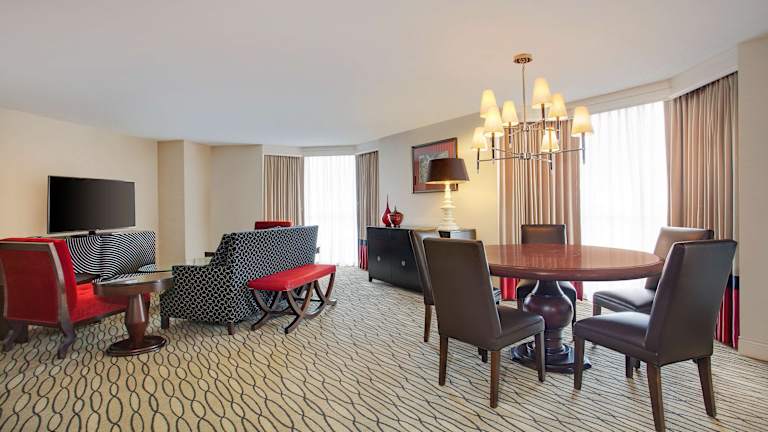 Das Hotel verfügt über ein hoteleigenes Restaurant, die Liberty Tavern, in dem Sie typisch amerikanische Gerichte genießen können. Die Liberty Tavern Lounge bietet erfrischende Cocktails und Getränke sowie einen Zimmerservice für Gäste, die lieber in ihrem Zimmer speisen möchten.