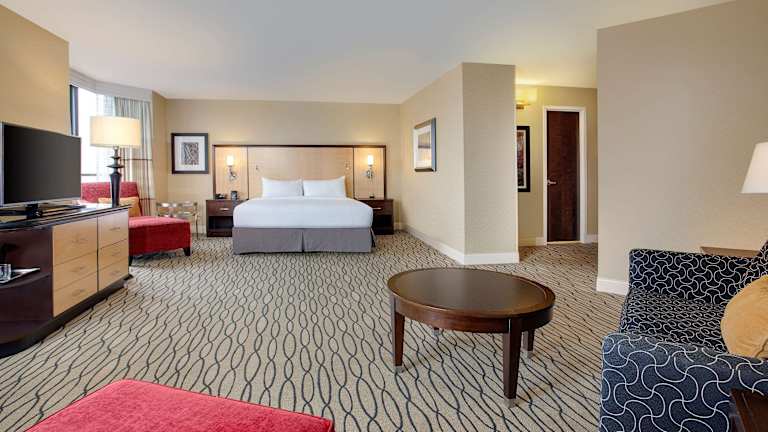Die Zimmer im Hilton Rosemont Chicago O'Hare sind komfortabel und stilvoll eingerichtet. Jedes Zimmer verfügt über einen 37-Zoll-Flachbild-TV, einen MP3-Wecker und eine gemütliche Daunendecke sowie Daunenkissen. Die Badezimmer sind gut ausgestattet und bieten Designer-Pflegeprodukte für zusätzlichen Komfort.