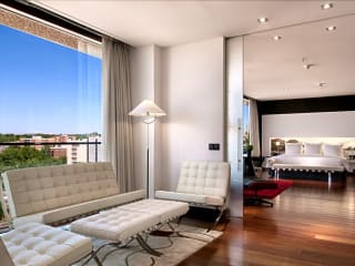 It will take only a heartbeat on a complimentary shuttle from Madrid's international airport to reach the stunning threshold of Hilton Madrid Airport, a grand, spacious hotel with ultramodern equipment and minimalist, superbly elegant accommodation. With a coveted location right next to a metro station and a 20-minute ride away from Madrid's central attractions on the free hotel shuttle, this fantastic establishment is suitable for business travellers, leisure seekers, and families alike. The 284 guest rooms delight with comfortable, clean design; floor-to-ceiling windows and floor heating; comfy, custom-made bed and tasteful furnishings; HDTV and wireless Internet; work station; marble bathroom; and multiple modern amenities. An exquisite selection of suites and executive rooms will grant every whim and ease needed, as well as exclusive access to the Executive Lounge featuring a chic business-themed space with high-tech equipment, included breakfast, and day-long refreshments. Relish Hilton's signature aromatic breakfast buffet at La Plaza, and dine with grace and gusto at Reserva Grill Restaurant enticing with delectable international and local dishes. The Ferrum Bar is the finest tapas-and-wine destination onsite, and you can always retire to the lounge area with a steaming cup of coffee. Take pleasure in bohemian wellness at the hydrotherapeutic pool, and exercise to your heart's desire at the well-equipped gym. The hotel also boasts a grand, secluded Convention Center with 15 versatile individual spaces and state-of-the-art conference facilities. Organize a memorable social event at the stunning Great Isabela Ballroom, which can comfortably fit up to 580 guests. Whether you are seeking fantastic accommodation, well-deserved wellness, superb dining, or that perfect event space, Hilton Madrid Airport has everything for a refined experience of any scale!