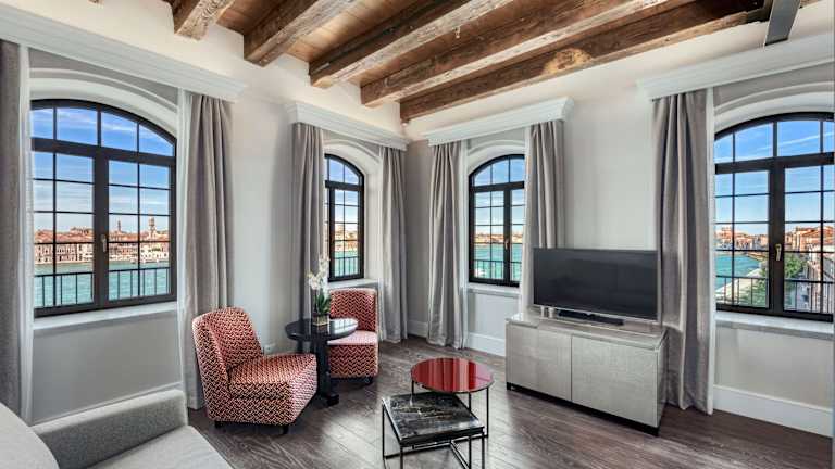 Die Zimmer und Suiten im Hilton Molino Stucky Venice sind elegant und modern eingerichtet und bieten einen komfortablen Rückzugsort nach einem erlebnisreichen Tag in Venedig. Die Zimmer sind mit Klimaanlage, Flachbild-TV und einer Kaffeemaschine ausgestattet. Einige Zimmer bieten einen atemberaubenden Blick auf die Stadt und den Kanal.