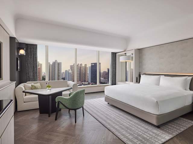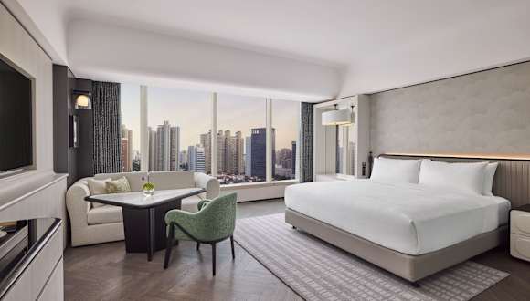 Das Hotel bietet 382 Zimmer auf 23 Etagen, die mit modernen Annehmlichkeiten ausgestattet sind. Die Zimmer verfügen über Klimaanlage, Heizung, TV mit Satelliten-/Kabelempfang, WLAN, Safe, Minibar, Kühlschrank, Tee-/Kaffeemaschine und Schreibtisch. Die Badezimmer sind mit Dusche und Badewanne ausgestattet und bieten Haartrockner und Bademäntel. Einige Zimmer sind rollstuhlgerecht und verfügen über barrierefreie Badezimmer.