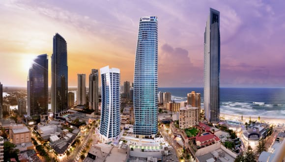 Hilton Surfers Paradise Hotel & Residences is located meters away from the iconic Surfers Paradise Beach, just in between Orchid Avenue and Surfer's Paradise Boulevard. Explore the dynamic and lively Surfers Paradise district that is located right next to shopping, entertainment and business spots. This hotel puts all of the Gold Coast’s famous features right at your fingertips. Choose from a variety of accommodation types, modern guest rooms and spacious apartments with an option for 1, 2, 3 or 4 bedrooms. Each room offers a stunning ocean view or urban panorama, a comfortable bedroom with a modern living area and 37-inch HDTV, WiFi, coffee, and tea-making facilities. You can upgrade your stay to an Executive guest room on the upper floors of the towers with included Executive Lounge access with daily continental breakfast and refreshments combined with a spectacular view. Rejuvenate in the spectacular eforea Spa with a massage or special treatment offered by professional therapists. Take a dive in one of the four pools or enjoy the beautiful outdoor views while relaxing in the heated swimming pool. This Gold Coast hotel offers two fully-equipped fitness centers with the latest equipment situated so you could always stay in shape. The range of 5-star amenities includes a private cinema, kids' playground and local area transportation. The dining options in this Surfers Paradise hotel include the luxurious and stylish Catch Restaurant where you can start your day with a classic Australian Buffet breakfast. You can find everything from healthy dishes to something sweet - freshly baked pastries, pancakes and waffles. Enjoy your time at Ms Margot's Bar & Eats where you can sample delicious cocktails and sumptuous dishes including cheeseboards, pizzas, seafood, sides and salads. For business meetings and events, choose from several meeting spaces with modern equipment. For large special events, book the Ballroom and enjoy the latest audiovisual technology for your next big event.