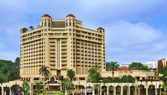 Delight in the comforts of Yaoundé's sole international hotel, Hilton Yaoundé, combining an enchanting sensitivity for local arts and customs with contemporary surroundings and world-class hospitality! Situated in a prime spot in Cameroon's capital, amidst the country's top corporate offices and businesses, the hotel is also an ideal base to explore the city's cultural heritage, local markets and top attractions. The premises lie only a half-hour-long, free-shuttle ride away from the Nsimalen International Airport, and mere 10 minutes by taxi from Palais des Congrès de Yaoundé. There is a wide range of 248 guest rooms, suites and executive rooms defined by bright, luxurious décor and multiple creature comforts, including a 32-inch HDTV and WiFi. Upgrade to spacious, top-floor executive rooms, which offer panoramic views of the city and access to the delightful and cosily decorated Executive Lounge with included breakfast and day-long refreshments. Five exquisite restaurants and bars turn this grand establishment into a favored dining destination and a social hub: Le Pachy restaurant with opulent, red-dominated interior and French-inspired dining; Le Safoutier restaurant with stylish surroundings and mouth-watering buffet arrangements; Le Panoramique, an intimate bar space on the 11th floor, enchanting guests with sweeping panoramas and soft jazz rhythms over sumptuous spirits; Ô Vive bar with contemporary beach bar setup and a chill-out zone right by the pool; La Cascade bar with African-themed décor, delicious snacks and 24-hour service. Nourish your body and mind at the fantastic wellness and fitness facilities onsite, including a swimming pool, tennis courts, fitness centre, sauna, and more. For those tempted by the goddess of fortune, the hotel also operates a stylish casino. Corporate travelers will be pleased with the modern business center open around the clock and a choice of 16 flexible, multi-purpose meeting rooms, equipped with the latest conference technology. Host a sweeping event for up to 900 guests at the hotel's breathtaking ballroom, and turn any occasion into a grand celebration for everyone to remember!