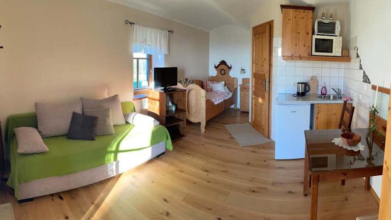 Im Himetsbergerhof wird ein Frühstück angeboten, das eine Auswahl an à la carte, vegetarischen und glutenfreien Optionen beinhaltet. Die Küchenzeilen in den Wohneinheiten sind mit Kühlschrank, Ofen und Mikrowelle ausgestattet und ermöglichen eine Selbstverpflegung.