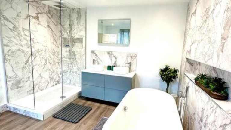 Das Ferienhaus bietet Platz für bis zu 5 Schlafzimmer, ein Wohnzimmer mit Flachbild-TV und eine gut ausgestattete Küche, die einen Kühlschrank und einen Geschirrspüler beinhaltet. Es sind 2 Badezimmer mit Dusche vorhanden. Handtücher und Bettwäsche werden bereitgestellt.