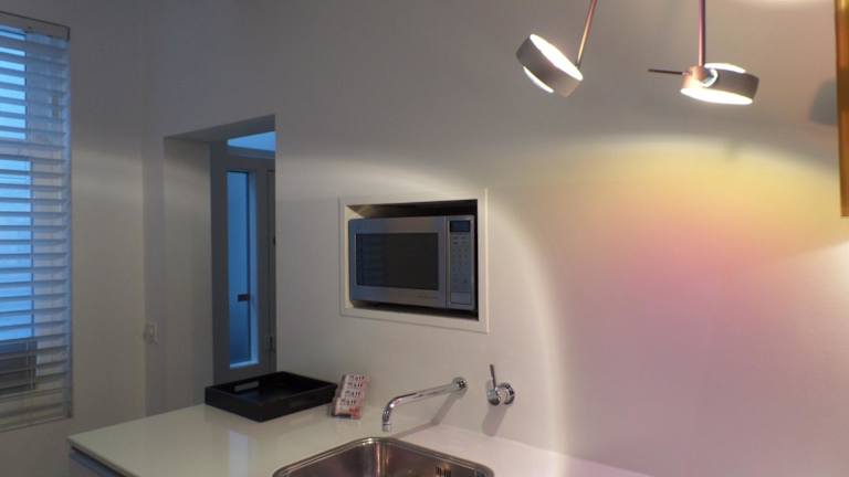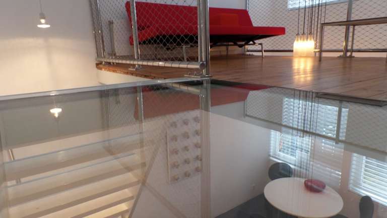 Die Unterkunft bietet ein Apartment mit moderner Ausstattung. Die Küche im Erdgeschoss ist mit einem Elektrokochfeld, einer Nespresso-Kaffeemaschine und einem Geschirrspüler ausgestattet. Das Badezimmer verfügt über Fußbodenheizung und eine Dusche. Eine offene Treppe führt zu einer Lounge im Zwischengeschoss mit Flachbild-Kabel-TV und einer DVD-Auswahl. Das Schlafzimmer ist minimalistisch und bietet ein extralanges Auping-Bett sowie sanfte Beleuchtung.