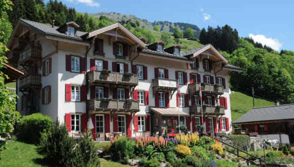 Das Swiss Historic Hotel du Pillon liegt an einem Südhang oberhalb des Dorfes Les Diablerets und bietet einen atemberaubenden Panoramablick auf den Diablerets-Gletscher und die Alpen. Das Hotel ist nur 12 Gehminuten oder 2 Fahrminuten vom Dorf entfernt und bietet eine ruhige und malerische Lage. Die Umgebung lädt zu Aktivitäten wie Wandern, Skifahren und Radfahren ein. Der Bahnhof Les Bovets, die letzte Haltestelle der Bergbahn vor der Endstation in Les Diablerets, befindet sich in unmittelbarer Nähe des Hotels.