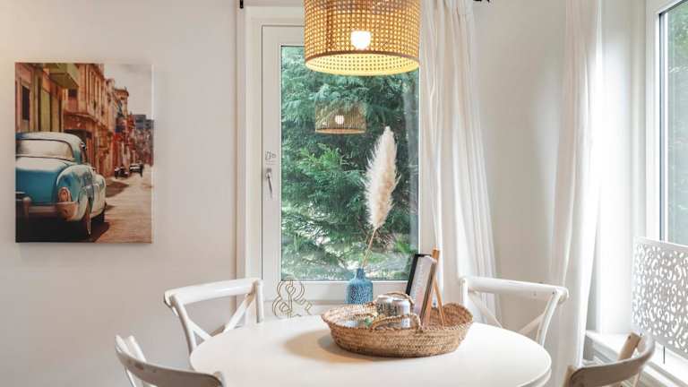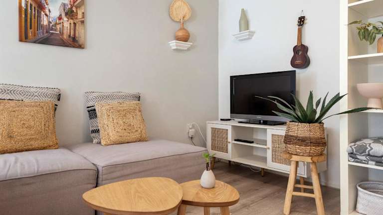 Die Unterkunft umfasst ein Schlafzimmer und eine voll ausgestattete Küchenzeile. Zudem gibt es einen direkten Zugang zu einer Terrasse.