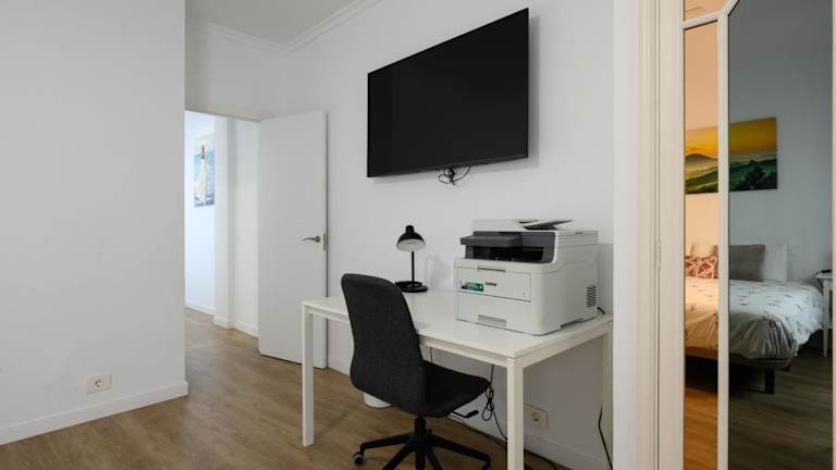 Die Ferienwohnung umfasst drei Schlafzimmer sowie ein Wohnzimmer. Sie ist mit einer voll ausgestatteten Küche ausgestattet, die einen Kühlschrank und eine Kaffeemaschine umfasst. Ein Badezimmer mit Dusche und Haartrockner sowie ein Flachbild-TV sind ebenfalls vorhanden.