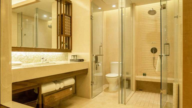 Die Zimmer im Nadara Sanya Bay Guest House sind schallisoliert und klimatisiert, um Ihnen einen angenehmen Aufenthalt zu garantieren. Jedes Zimmer verfügt über ein Flachbild-Kabel-/Sat-TV, ein Ankleidezimmer, einen Schreibtisch, einen Wasserkocher und eine Minibar. Im eigenen Bad finden Sie Bademäntel, Hausschuhe und kostenfreie Pflegeprodukte vor.