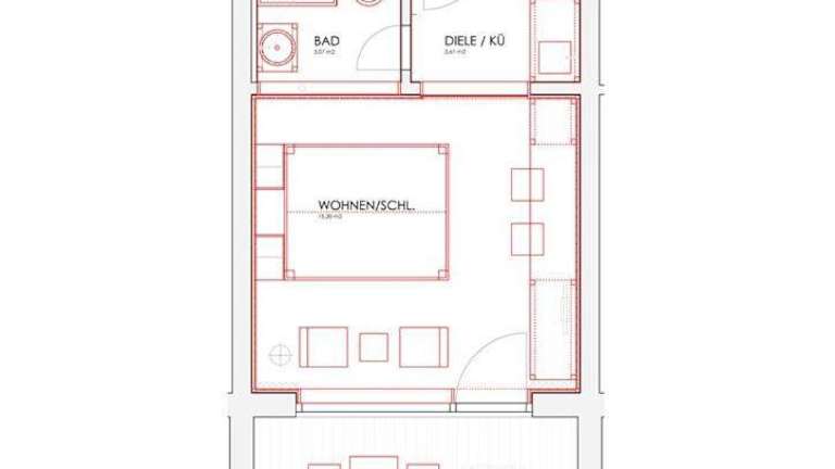 Die Ferienwohnung besteht aus einem Schlafzimmer, einer Küchenzeile, die mit einem Kühlschrank und einer Herdplatte ausgestattet ist, sowie einem Badezimmer mit Dusche und Badewanne. Zur Unterhaltung steht ein Flachbild-TV zur Verfügung.