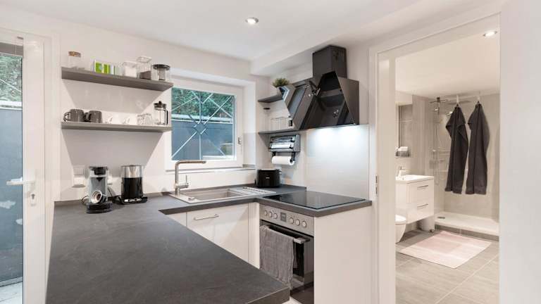 Die Ferienwohnung umfasst ein Schlafzimmer, ein Wohnzimmer und eine voll ausgestattete Küche mit Kühlschrank und Kaffeemaschine. Außerdem gibt es ein Badezimmer mit Dusche und kostenlosen Pflegeprodukten. Handtücher und Bettwäsche werden bereitgestellt. Die Unterkunft ist klimatisiert und alle Bereiche sind Nichtraucherzonen.