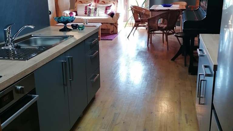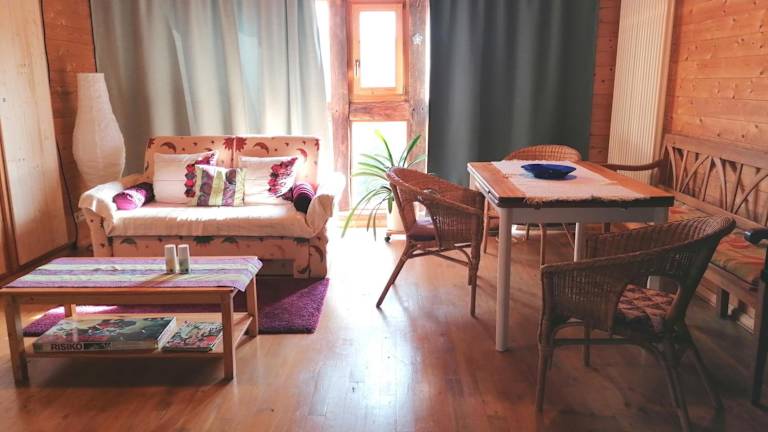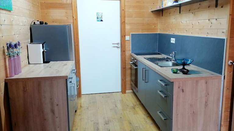 Die Ferienwohnung umfasst ein Schlafzimmer, ein Wohnzimmer und eine voll ausgestattete Küchenzeile mit Kühlschrank und Kaffeemaschine. Das Badezimmer ist mit einer Dusche und kostenlosen Pflegeprodukten ausgestattet. Handtücher und Bettwäsche werden bereitgestellt.