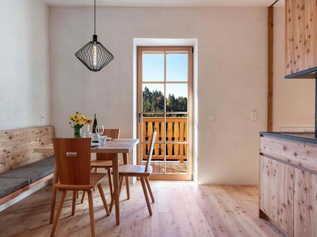 Hof im Thal Apt Lärche ist eine Ferienwohnung, die einen Blick auf den Garten bietet. Sie verfügt über eine Terrasse, die einen Blick auf die Berge gewährt, und ermöglicht Gästen eine komfortable Übernachtung mit verschiedenen Annehmlichkeiten.