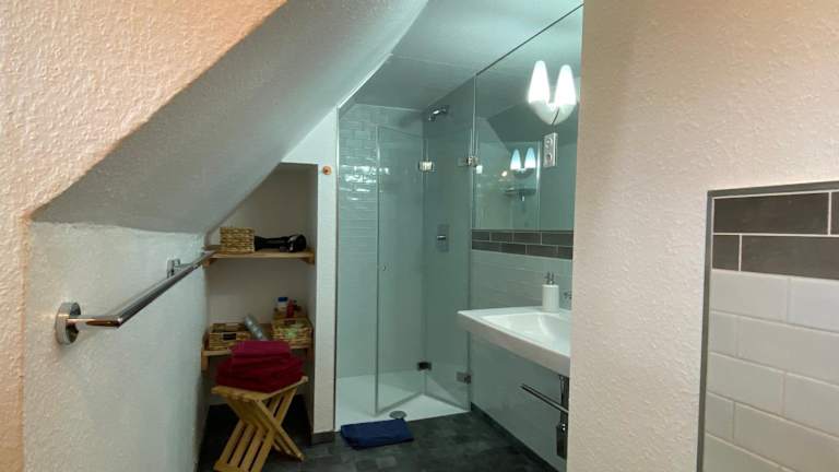 Das Apartment im Hof Rahlf ist geräumig und bietet Platz für erholsame Tage inmitten der Natur. Die Einrichtung ist rustikal und gemütlich, mit Holzmöbeln und einer warmen Atmosphäre. Das separate Schlafzimmer sorgt für eine angenehme Nachtruhe und das Wohnzimmer ist der perfekte Ort, um sich zu entspannen und einen Film auf dem TV zu genießen. Vom Balkon aus können Sie die malerische Landschaft bewundern. Das Badezimmer verfügt über eine Dusche und einen Haartrockner. Die voll ausgestattete Küche bietet alles, was Sie für die Zubereitung Ihrer eigenen Mahlzeiten benötigen, einschließlich einer Kaffeemaschine und einer Mikrowelle.