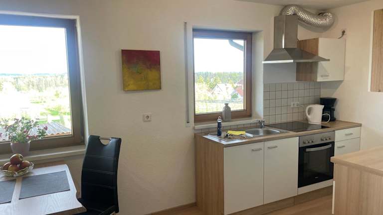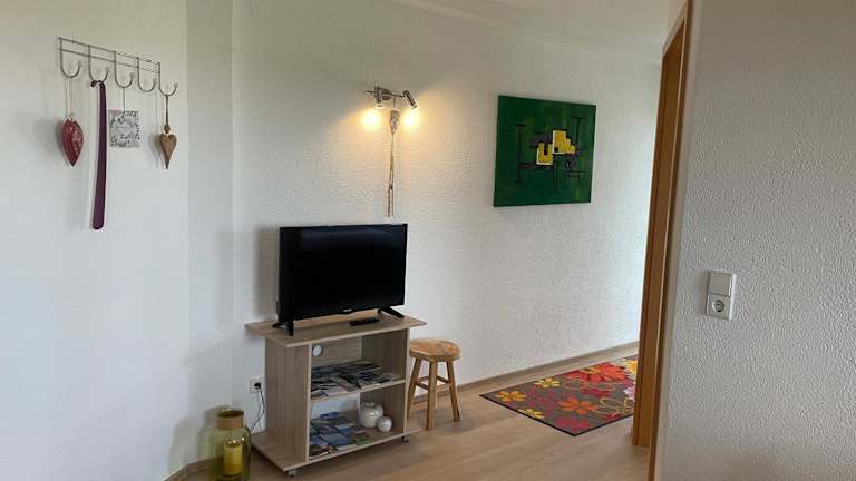 Die Ferienwohnung bietet Platz für bis zu zwei Personen und umfasst ein Schlafzimmer, ein Wohnzimmer, ein Badezimmer mit Dusche sowie eine vollständig eingerichtete Küche mit Kühlschrank und Ofen. Zur Ausstattung gehören auch ein Flachbild-TV, Handtücher und Bettwäsche.