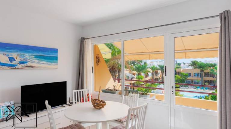 Die Ferienwohnung verfügt über ein Schlafzimmer, ein Wohnzimmer, einen Flachbild-TV und eine gut ausgestattete Küche mit Kühlschrank und Mikrowelle. Die Unterkunft bietet ein Badezimmer mit Dusche, Balkon und Poolblick. Handtücher und Bettwäsche werden bereitgestellt. Die Unterkunft wird nach lokalen Richtlinien desinfiziert.