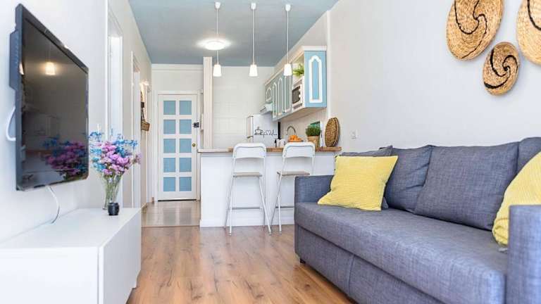 Das Apartment im Hola ola Bajamar ist geräumig und komfortabel. Es verfügt über ein Schlafzimmer, ein Wohnzimmer mit einem Flachbild-TV und eine voll ausgestattete Küche mit Kühlschrank und Backofen. Das Badezimmer ist mit einem Bidet ausgestattet. Handtücher und Bettwäsche werden gestellt, so dass Sie sich um nichts kümmern müssen. Auf dem Balkon können Sie die frische Luft und die Aussicht genießen.