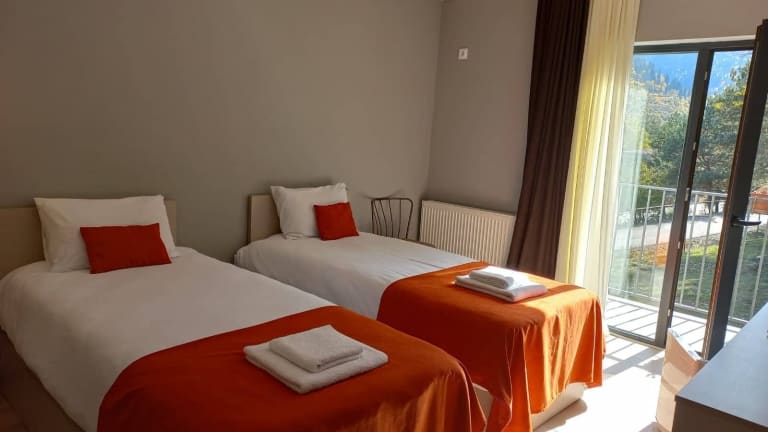 Die Zimmer sind mit einer Veranda oder einem Patio mit Gartenblick ausgestattet. Jedes Zimmer beinhaltet einen Schreibtisch, einen Flachbild-TV, ein eigenes Badezimmer sowie Bettwäsche und Handtücher. Zudem verfügen alle Zimmer über einen Balkon mit Blick auf die Berge und einen Kleiderschrank.