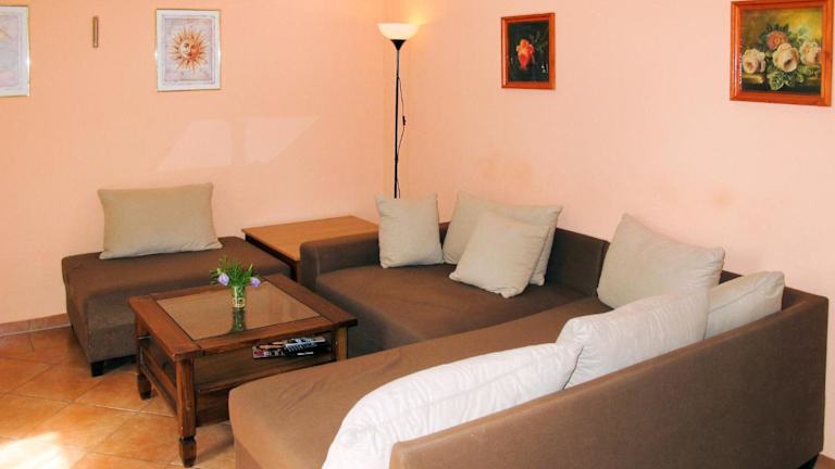 Das Ferienhaus verfügt über zwei gemütliche Schlafzimmer, die Ihnen eine erholsame Nachtruhe bieten. Das Wohnzimmer ist mit Sat-TV ausgestattet und lädt zum Entspannen ein. Die voll ausgestattete Küche bietet Ihnen die Möglichkeit, Ihre eigenen Mahlzeiten zuzubereiten und den Kühlschrank und den Backofen zu nutzen. Im Badezimmer finden Sie eine Badewanne, in der Sie sich entspannen können.