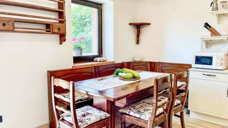 Das Ferienhaus bietet zwei Schlafzimmer, eine gut ausgestattete Küche mit Kühlschrank, Geschirrspüler und Ofen sowie zwei Badezimmer, die jeweils mit einem Bidet und einem Haartrockner ausgestattet sind.